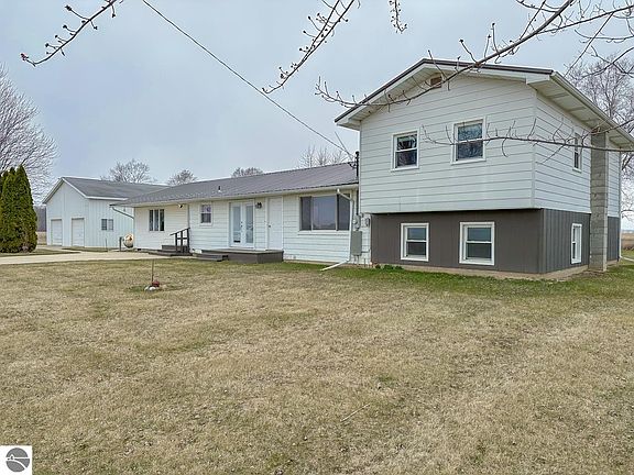 Room for the whole crew! This 5 bedroom, 2 bath tri-level gives everyone their own space, featuring 2 large bedrooms up stairs, each with double closets, plus 3 more bedrooms on the main floor. One end of the house is set up as its own "apartment" or in-law suite; it would make a grand master bedroom as well and has its own exterior access door to the back deck. The main living space is open and bright and has had many updates, including flooring throughout much of the home, new light fixtures, a recently renovated bathroom, and a steel roof. Need storage space? It has that too, boasting a large 30'x48' detached garage with 12' sidewalls. Surrounded by agricultural ground, you'll love the quiet rural setting while remaining convenient to both US-10 and 127, only 10 miles from Clare or Mt. Pleasant.