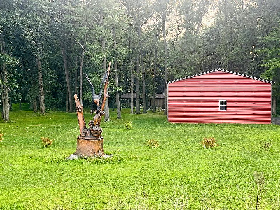 *Eagle Carving at road is leaving with home owner. Other carvings staying*