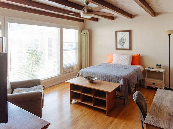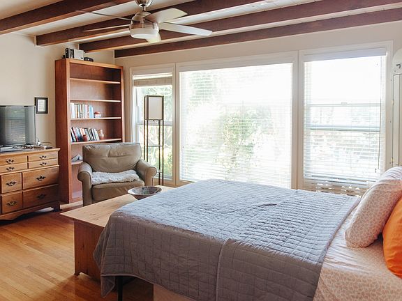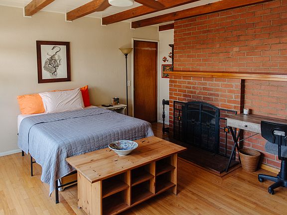 Fully furnished Private room for one person ( preferably female) with a fireplace , large windows looking out onto the backyard. Full size bed, dresser, Smart TV, chair, table, and large bookshel.