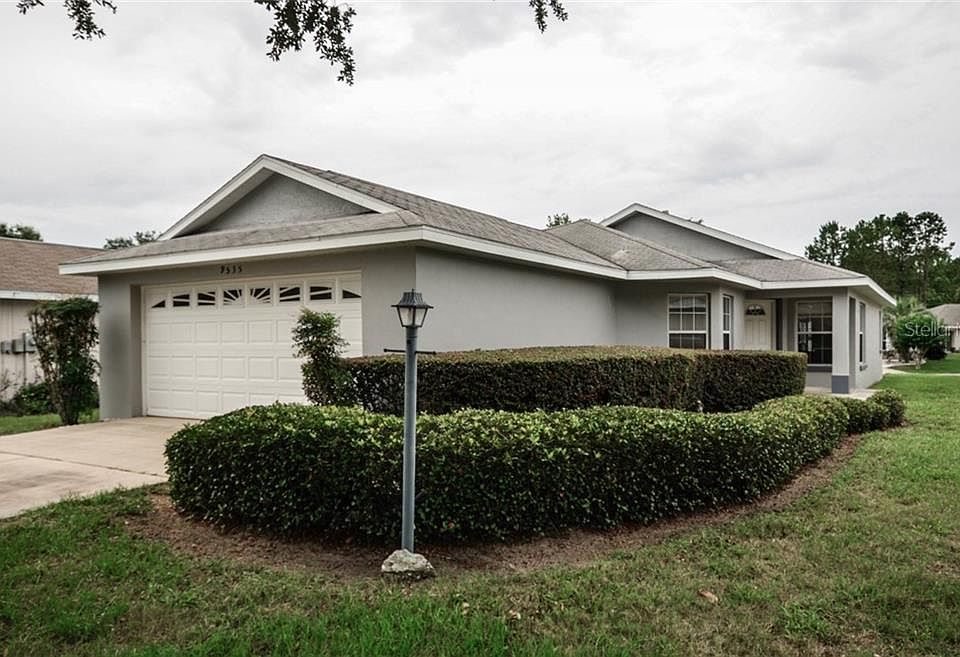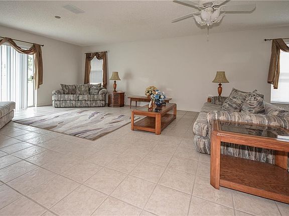 No neighbors directly behind. This expanded Sheffield model home is located in the much sought after gated 55+ golf community of On Top of the World. Home features 2 Bedrooms PLUS Den, 2 Baths, 2-car Garage, patio, tile flooring throughout main living areas, laminate flooring in bedrooms and den, brand new roof (June 2020), newer HVAC (2019), washer and dryer, and more. Lawn care, basic cable, gym, 24-hour guarded gate, exterior painting, and more are included by your monthly HOA fee. To your left upon entry is an open eat-in Kitchen which features plenty of cabinet storage, lots of counter space, pantry and pass-thru counter overlooking the large combination Living/Dining Room. The split bedroom plan features the Master Suite at the back left corner of the home which features a walk-in closet AND additional closet, and Master Bath with step-in Shower. The split bedroom floor plan features the Guest Bedroom, Guest Bath, and Den at the front left side of the home. The Den can easily become a 3rd bedroom by converting the alcove to a walk-in closet.
