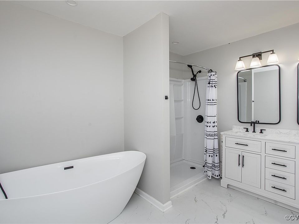 - Bedroom on Main Level, Ceiling Fan(s), Double Vanity, Kitchen Island, Main Level Primary, Recessed Lighting, Walk-In Closet(s)