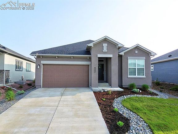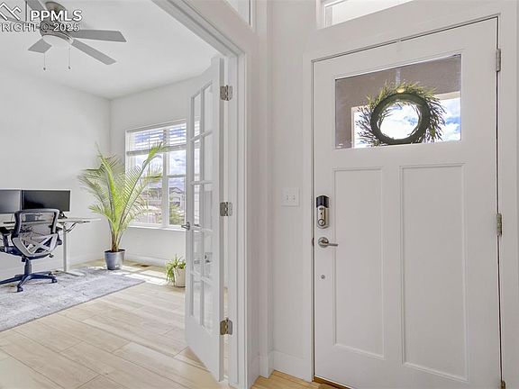 Built in 2023 by David Weekley Homes, this like-new Tibbetts floor plan is located in the highly desirable Revel at Wolf Ranch community and offers a perfect blend of style, space, and functionality. The main level showcases 10’ ceilings and an open-concept layout that seamlessly connects the living room, dining area, and gourmet kitchen. Designed with both comfort and convenience in mind, the main level also features a dedicated office, laundry room, and a spacious primary suite. The kitchen is a chef’s dream with white cabinetry, Tofino quartz countertops, a large island, and upgraded appliances—including a 36” gas cooktop, vent hood, built-in microwave, and electric oven. The primary suite offers a spa-shower, double vanity, and walk-in closet with built-in wood shelving. The finished basement includes a second living room space, two additional bedrooms, and a full bath, with unfinished space currently used as large storage room but perfect for a future home gym, office, or future bedroom. Additional highlights include front and rear landscaping, quartz countertops in all full bathrooms, and abundant natural light throughout. Revel at Wolf Ranch offers fantastic community amenities including a lake, clubhouse, park hosting family friendly community events, dog park, walking trails—all within the award-winning D20 school district. This is a rare opportunity to own a move-in ready home in one of Colorado Springs’ premier neighborhoods.