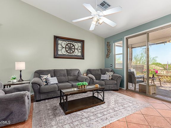 **VA Buyers have option to Assumable 2.25% VA loan **This meticulously cared for 2-bedroom 2 bath home is true resort style desert living located in Vista Point gated community! Step out your front door to mountain views, community pool and hiking trails! Located directly across from the prestigious Gold Canyon Golf Resort! Open floorplan, vaulted ceilings, natural lighting and split bedrooms! The primary bedroom offers new bathroom shower installed in 2022, large walk in closet and laminate flooring. Secondary bedroom is split and next to second bathroom. Extend your living space outside the Great room into the tranquil backyard that is filled with natural desert views (amazing flowers in the spring!), beautifully designed easy to care backyard and greeted by hummingbirds You won't ever want to leave home!