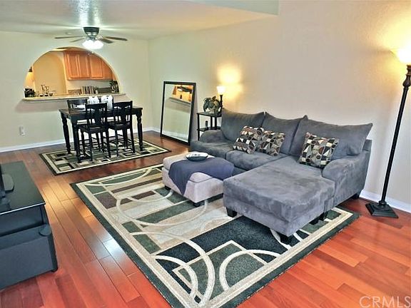 Spacious, multi-level Bellflower townhome in a small complex is upgraded and move-in ready! This home features gleaming hardwood floors, vaulted ceilings, and a beautiful kitchen with custom wood cabinets and granite counter tops. The main floor features a large living room, dining area, bedroom, bathroom, and laundry area plus a balcony that can be accessed from the living room or bedroom. Upstairs you'll find an additional two bedrooms with two full baths, plus an additional balcony. All the bathrooms have been updated and the home features custom paint and ceiling fans plus central heat and air conditioning. The two-car garage offers direct access. Situated close to the quaint downtown area of Bellflower, this townhome is convenient to shops, restaurants and transportation.