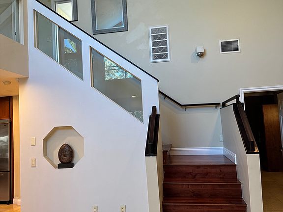 Upstairs, you'll find a convenient laundry closet with washer and dryer, a versatile bright loft with ample closet space (perfect for an office, entertainment area, or guest suite), and a private bedroom retreat with skylights. A full bathroom with both shower and tub, a mini office nook, and a striking corridor lead to an incredible rooftop deck with peekaboo ocean views.