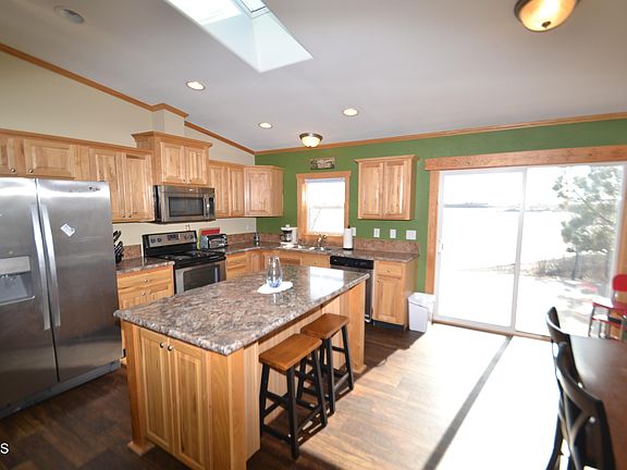Bring the suntan lotion & your towel - this spectacular home on Blue Lake is a hidden gem and truly a must see. Offering immaculate condition, you'll find the delightful features such as skylights and vaulted ceiling in the living room will have you ''oohing and ahhhing'' all the while. With its huge wrap around deck, you'll want to sit back, relax and soak up the sun. Back inside you will find a wonderful eat-in kitchen with stainless appliances, beautiful hickory kitchen cabinets, and an island along with patio doors leading to your amazing wrap-around deck and incredible views. This wonderful 3-bed 2-bath home offers a great laundry/mudroom entrance with cabinets and an adjoining ¾ bath. This fantastic property is tucked away, overlooks the Blue Lake and offers a private dock where you can enjoy all kinds of boating or water activities. Or you can choose to go for quiet walks or simply sit back and watch the lake and the wildlife. Wrap up the day with an evening spent roasting hotdogs and marshmallows on your firepit, all while sharing wonderful memories and recapping the day as you watch a gorgeous sunset unfold. You will find yourself enjoying incredible privacy with numerous trees on a 1.7 acre lot giving plenty of space and a buffer between you and any neighbors. All furniture and personal property onsite included to make it easy for you! This is the vacation home you've been searching for, don't wait - contact a realtor for a private showing and start planning your summer activities spent with your family and guests!