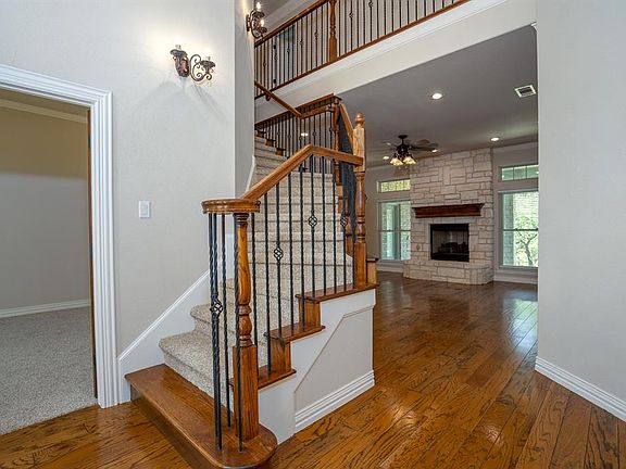 Beautiful home with mature trees on Boling Ranch Rd in Azle. A large open kitchen with granite countertops and stainless steel appliances. New carpet and paint throughout, along with updated light fixtures. There is a large game room on the second floor that could also be used as a second living room or another bedroom, as well as a media room with built-in surround sound. A chandelier in the front entry foyer that is on a hoist system so it can be lowered from the ceiling for easy cleaning. A wrought iron fence surrounds the backyard, a 3 car garage, and a private well on the property.
