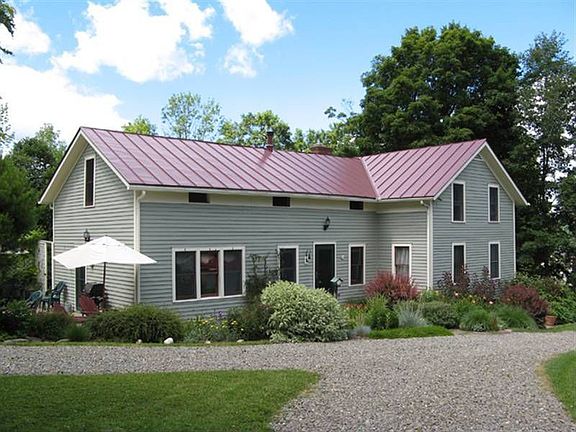 Magical. Romantic. Greek Revival farmhouse perched on the hillside with gorgeous perennial gardens, deck and stone patios. Only 4 miles to downtown, just minutes to IC and Cornell. Beautifully renovated: Original tin ceilings, wide plank floors, chestnut dining room, built-in china cabinet, striking red oak beams and cherry floor in living room, handsome bead-board ceiling in upstairs. A sunny updated kitchen with granite counters, tile back splash and all new appliances. Cozy wood stove, high quality Marvin double pane windows, a spacious, flexible floor plan, office/studio space and comfortable bedrooms. Master bedroom has a cathedral ceiling and HUGE walk-in closet. There are two unbelievably roomy updated baths. The property is flanked by creeks on either side and there are acres and acres of wilderness at the back of the property. Close to the South Hill Recreation Trail. You'll enjoy eating your meals out on the deck...gazing at the garden...watching the hummingbird