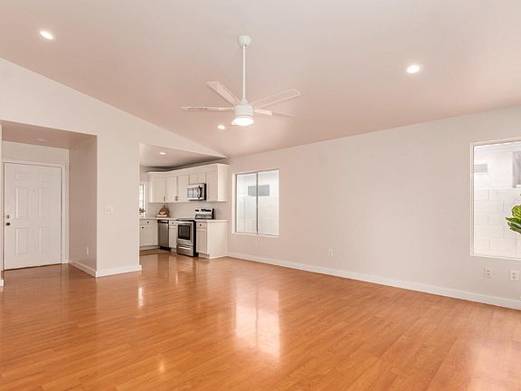 Covered patioLow maintenanceRecessed lightingWhite cabinetsQuartz countertopsVaulted ceilingsStainless steel appliances
