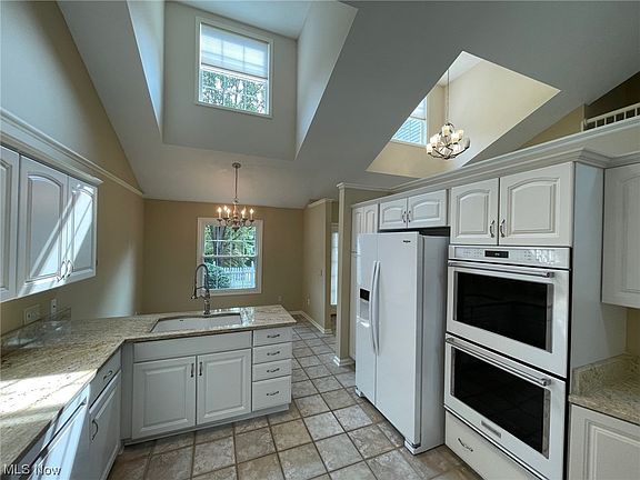Beautifully updated Lakes of Aurora condo with 4 bedrooms and 3.5 baths, about 3000 sq ft., of total living area including the finished basement. Private deck and rear patio have a view of the lake and your own personal pedal boat! Potential one floor living with primary bedroom with en suite bath that includes deep soaking tub, separate shower, dual sinks, and walk-in closet; first floor laundry; ramp for easy access from garage. Huge kitchen includes all appliances, double oven, granite counters, and lots of cabinets, plus eat in area. Other features: second kitchen, bar, workshop, and full bath in the basement; massive great room with vaulted ceilings and fireplace; new carpet throughout. Neighborhood amenities include community room, swimming pool, tennis courts, and more. Home warranty included.