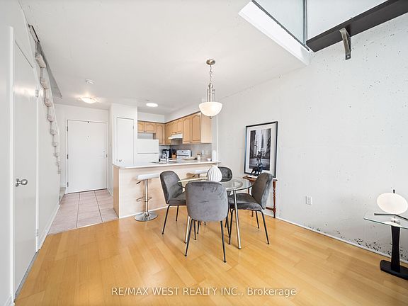 Welcome to 954 King St West, suite 510, a bright and airy 2 storey, 1+1 bedroom, 2 bathroom unit in the King West Village Lofts.Nestled in the heart of King West, this condo is within easy walking distance of the fashion, entertainment, dining, shopping and night life attractions of this vibrant downtown neighbourhood. You can walk to Trinity Bellwoods Park and have a picnic, or stroll down to Liberty Village and the Exhibition grounds.We are also close to many local TTC routes as well as the Exhibition GO station. This suite features an open plan main level with hardwood floors and double height floor-to-ceiling windows letting in an abundance of natural light.The spacious living room has soaring 17ft ceilings, amplifying the sense of spaciousness, and a quiet balcony where you can enjoy your morning coffee.The functional kitchen is open to the living and dining area and has a large breakfast bar - perfect for entertaining. There is also a powder room on the main level. Upstairs there are two bright rooms; the primary bedroom with a double closet and ensuite 4 peice bathroom with a laundry room, as well as a second speacious room can be used as a bright, open office or even a spare bedroom. This unit comes with a parking spot and a locker. The building amenities include a gym, a party room, a meeting room and a media room. What a great opportunity to enjoy a downtown life style in the sought after King West neighbourhood!