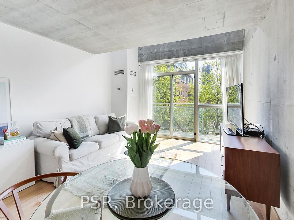 Welcome to 954 King St. W, A Completely Renovated Two Storey Loft In A Boutique Architectural Gem in the Heart of King West/Niagara. Newly Renovated Loft With Double-Height Ceilings, Exposed Concrete Walls, And Wall-to-Ceil-ing Windows With South Views Overlooking Massey Harris Park! This Bright and Spacious 1 Bedroom + Extra Large Den, 1.5 Bath Unit Features a List Of Upgrades Including, Fully Upgraded Kitchen & Baths, Hardwood Floors Throughout, Remote-Control Blind, New Washer/Dryer, New Lighting. The Main Level Opens Into an Airy, Open Concept Living/Dining, Powder Room and Chef's Kitchen With a Well-Appointed Breakfast Bar and Walk Out To South Facing Terrace, Ideal for Entertaining. Upstairs, Youll Find A Spacious Bedroom and Den, Generous Closet Space, Ensuite Spa Like Bath and Laundry. Storage Conveniently Located Ensuite. Parking Included! Building Comes With Incredible Amenities: Gym, Party & Games Room, Theatre Room & Visitors Parking. Terrific Value As Maintenance Fee Includes All Utilities. 10/10 Prime King / Queen West Location Steps To The Best Toronto Has To Offer. Walk To The Best Restaurants, Cafes, Bars, Shopping (The Well), Transit (King Streetcar at Your Door), & Green Space Just Across The Street.