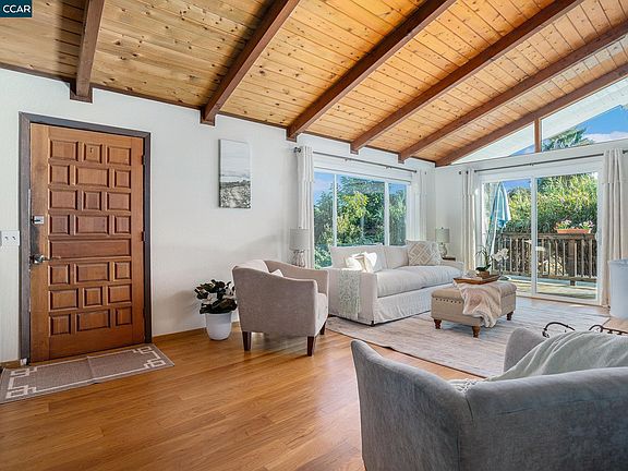 Charming home with peaceful backyard. Kitchen with granite counters, built-in microwave, stainless appliances, breakfast bar and hardwood floors. Light and bright living room with vaulted wood beam ceiling, hardwood flooring, slider to rear deck and large window to catch a glimpse of Mt. Diablo. Formal dining area with vaulted wood beamed ceiling. Spacious primary bedroom on main level with walk-in closet, vaulted wood ceiling, stylish barn door, tastefully updated bathroom with tile flooring and custom tile shower. Two bedrooms downstairs with oversized closets and access to rear yard. Potential for in-law set up with separate entrance. Inside laundry, central heat and air, dual pane windows. Newly paved large driveway great for off street parking, RV/boat. Backyard with peaceful setting, hot tub, mature fruit trees: lemons, limes and oranges. Zoned for award winning Morello Park Elementary. Conveniently located to shopping, parks, Highways 4 and 680.