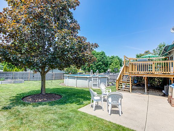 Lovely home sits on a lovely fenced lot! Spacious living room offers bright windows. Huge remodeled kitchen with tons of beautiful cabinets, an island, all appliances and a door to the elevated deck. The dining area is deep with a pretty window and it features modern lighting and a gorgeous built- in cabinet for dishes, television and storage. The owner's suite is light and airy and offers a private updated bath. Down the hall you'll find additional bedrooms plus an updated full bath. Downstairs has great windows, a wet bar, a BIG family room, a powder room and the laundry room. Deep garage with storage is perfect for all your tools and toys. Enjoy summer in your private pool with multiple covers and extra equipment that will stay. The lower patio leads to covered outside storage. New Roof in 2020, Central Air in 2022. This is a great home and neighborhood! Stop by today!
