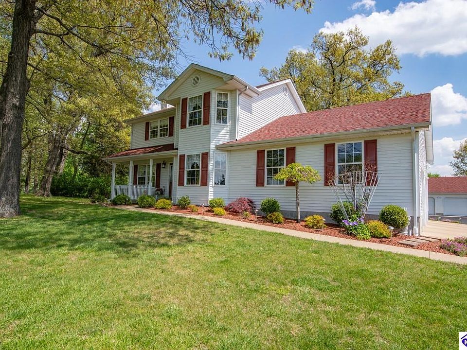 Your opportunity awaits you with this distinguished property that is beautifully appointed and features an oversized garage, and scenic views! The detached workshop is 1380 sq ft and impressive! This 2-story home features fresh paint, new carpet, hardwood flooring in the dining & living room, tile flooring in the kitchen, laundry and bathrooms and a gas fireplace in the main living room. The kitchen is extra special to include granite countertops, plenty of cabinet space and a full appliance package for the chef in your family. Other features include granite countertops in the bathrooms, a tiled stand up shower in the primary bathroom, a mostly finished basement with a wet bar and multiple finished spaces for entertaining, toy room and more. The exterior has plush landscaping, a manicured lawn and a paved driveway. All of this and the home has mature trees and a convenient location in the sought after Rineyville area! This is truly an impressive home! There is also an adjoining lot being sold separately that has a 2040 sq ft workshop that sits on 1.078 acres. Schedule your viewing today!