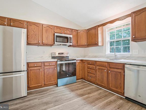This conveniently located, 4 LVL Split is, Open & Neutral, and has New vinyl plank flooring on the main level in the kitchen, dining room, and living room. It features fresh paint throughout, some ,new LED ceiling light fixtures, and there is an extra frig in the 1 car garage, that conveys As Is . The GE kitchen appliances are brand new w/ the frig being energy star. Upstairs has New Carpet throughout, and 2 more updated, full baths, with new vanities, hardware, shower door,and light fixtures. The cathedral ceiling in L/R, D/R & Kit, gives it a bright open floorplan. There is a deck off of the dining room and a private backyard. With just 5 steps down, there is a family room with laminate flooring, w/ an entry to the garage, as well as a 3rd full bath. Then, go down about 5 more steps to the partly finished basement with a 10' x 6 foot Bonus rm for an office, workout or craft room. There is lot of storage in this lower level as well as a washer and dryer. Roof is 2015, Heat & Ac is a heat pump in Aug 2022, hot water heat pump is 2014 & energy efficient, Exterior Water Line Replaced in 2023*Near NSA<, Ft Meade, BWI, Halfway between Washington DC & Balto., Must have a STRONG lender letter. This may be a IRC 1031 Exchange.The owner is a licensed agent.
