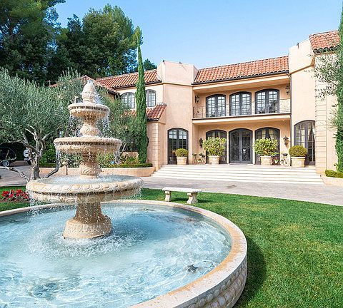 Situated behind double gates, up a long driveway on prestigious Sunset Blvd in the heart of Beverly Hills, this Exceptional Contemporary Mediterranean Villa with over 9,500 sq. ft. of living space is sited on over half an acre of beautiful resort-style grounds. This stunning estate has been totally redone with exquisite style & luxurious details & offers incredible scale with high ceilings & generous public rooms. Beautiful 30 ft. glass & rod iron entry doors open into a two-story Grand Salon with elegant double staircase. Beautiful formal living room, oversized family room, large formal dining room, & gourmet chefs kitchen with breakfast room. Guest suite & maids downstairs, upstairs 6 bedrooms including the fabulous master suite with its own formal entry, sitting room, fireplace, patio, beautiful marble bath & custom walk-in closet. The grounds offer a dazzling setting featuring abundant patio space, front lawn with cascading fountain, pool & spa. Truly a one of a kind property.