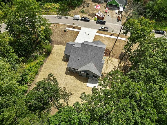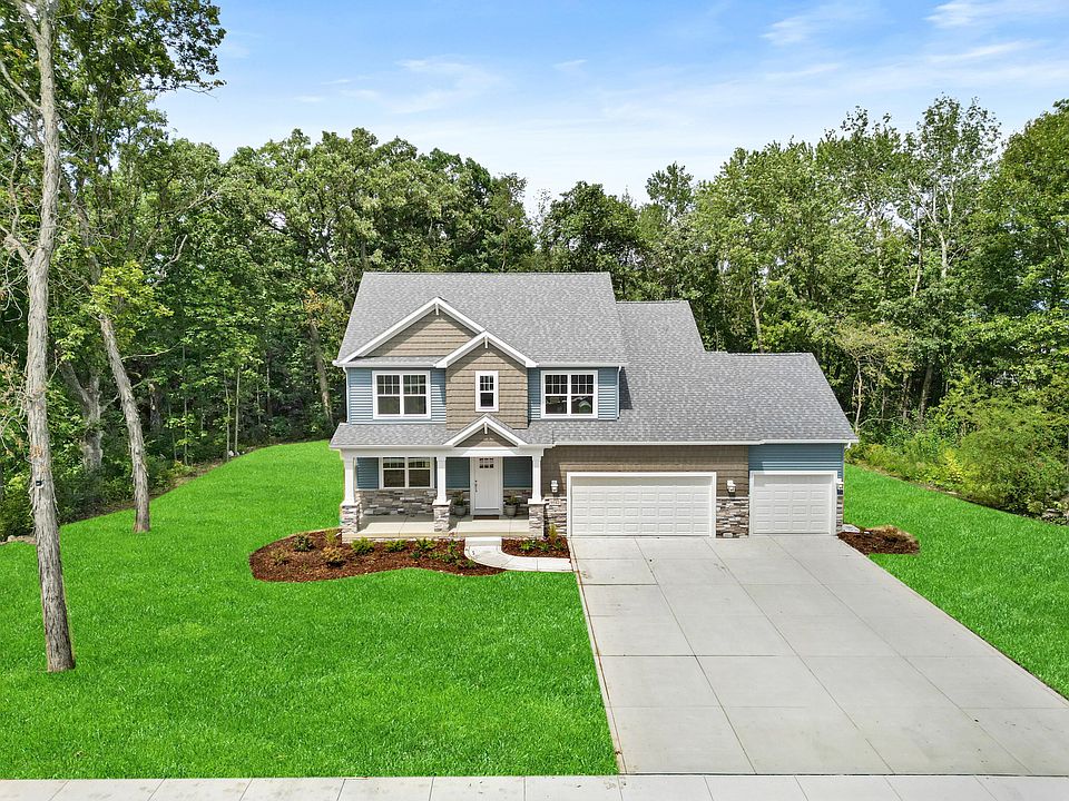 This beautifully crafted new construction home offers 4 bedrooms and 3.5 baths on a serene, wooded lot just shy of a half acre, combining privacy with proximity to town. The main level boasts a spacious primary bedroom with tray ceiling, luxurious en-suite, and a generous walk-in -closet. The open floor plan highlights stunning wood floors throughout, seamlessly connecting the kitchen and living area which is centered around a cozy fireplace. The kitchen features quartz tops, custom cabinets, a large island, corner pantry and an eye catching back-splash. Adjacent to the kitchen, a drop zone with built-in -bench is right off garage. Laundry, powder room, and office/flex room complete the main level. Upstairs you'll fine 3 additional bedrooms and 2 baths. Full basement with egress window and rough in plumbing is ready for future finishing. The exterior is equally impressive, with a covered front porch, back patio perfect for entertaining, 3.5 car garage, and landscaping package that includes sodded front yard, seeded back, sprinkler system, and parkway trees/front shrubs. 2x6 exterior walls, blown in blanket insulation, custom trim package and so much more! This property is the perfect balance of style, comfort, and quality craftsmanship!