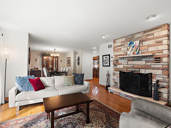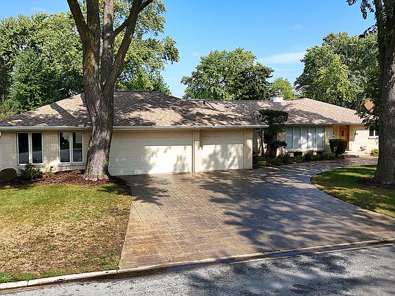 This one-of-a-kind updated brick ranch with a stamped concrete circle drive and a rare FOUR-car front-load garage is as impressive outside as it is inside. Step into a home that has been meticulously maintained, featuring hardwood floors and extra wide hallways throughout most of the main living areas. The formal living and dining rooms are highlighted by a gorgeous stone fireplace and expansive windows that flood the space with natural light. The chef's kitchen is designed to impress with an abundance of cabinetry, granite countertops, a stylish backsplash, and a center island with seating-perfect for gatherings. A second stone fireplace warms the cozy family room, creating another inviting space to relax. This home offers four spacious bedrooms, including a luxurious primary ensuite with a walk-in closet, dual sinks, a jetted tub, and a separate steam shower. The finished lower level is an entertainer's dream: enjoy a full recreation area, a wet bar with seating for six, a workout zone, a flex space, and even a full bathroom. From here, a separate entry leads to the backyard oasis with an oversized stamped concrete patio, pergola, lush grassy area, and a walkway to a second, more intimate patio. Practicality meets convenience with a room-sized laundry and ample storage. Check out the ultimate heated garage-fully finished with sleek drywall, durable flooring, modern lighting, a ceiling fan, 220 electric, and even doors that open to the backyard. And unique to most garages there's a powder room too. Talk about genius! The perfect man cave awaits! Gutter guards, boiler heat and central vac simplify maintenance. All this, and just minutes from shopping, dining, and expressways.