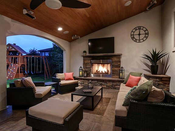 Cul-de-sac LOC! Dramatic 2 story entry, 9' ceilings, 8' drs, hickory hrdwds, txtr crpt, plntn shttrs, Hunter Douglas blnds, wired for surround sound w/controls in most rooms, built in wall speakers, cherry cabinets thruout, granite, bronze hrdwr, wrought iron staircase. Gourmet ktchn incl granite w/slate bcksplsh, SS JennAir applnc, dbl ovn, 6 burner gas cktop, islnd, hickory flr. Great Rm w/2 story ceiling, plntn shttr, wine bar w/wine chiller. Mstr Suite w/Retreat, 5 pc bth features dual granite/cherry vanities, ovrsize 6x6 shwr w/dual heads, jetted tub,12x6 wlk in clst. Lndry rm accessed from Mstr clst & hall, features granite/cherry upper&lower cabnts. Spacious secondary bdrms, Guest bdrm w/private bth. Cvrd outdoor living spc for yr round use w/gas frplc, overhd htrs, stmp concrete, granite/stone bar, connecting patio w/gas firepit. Large yard w/mature trees for privacy; children will enjoy playtime in the back & side yards. Finished garages wired for srrnd sound.