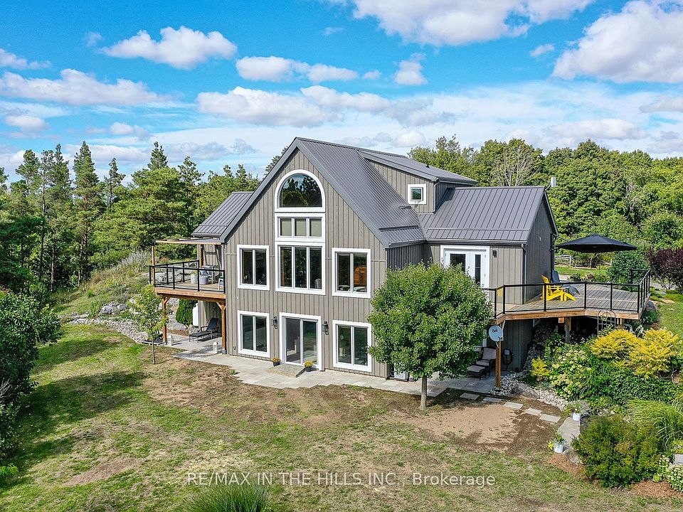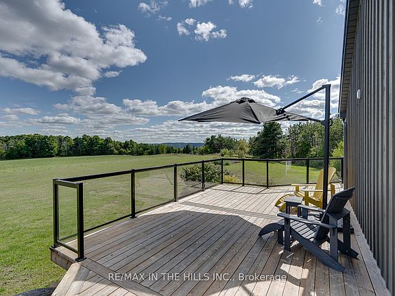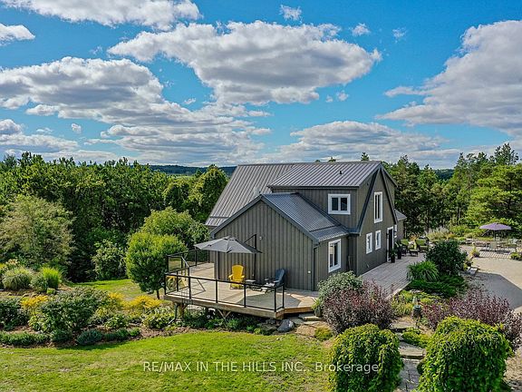Set on 50 gently rolling acres in scenic Hockley Valley, this exceptional country retreat combines timeless character with rural elegance. The customized Normerica post-and-beam home features soaring ceilings, expansive windows, and an open-concept layout that seamlessly blends indoor and outdoor living/. With four bedrooms (2+2) and 3 bathrooms, the home includes a main-floor primary suite and a fully finished walkout lower level built with 9-foot ceilings. The landscaped grounds are highlighted by a stunning three-tier pond with waterfalls, while extensive decking creates an inviting setting for gatherings or quiet retreats while taking in the spectacular views to the east and west over the valley. Equestrians and hobby farmers will appreciate the 5-stall barn, 30x72 drive shed, and Quonset hut, offering versatile space for animals, equipment, or workshops. Private yet convenient, the property provides easy access to amenities, schools, and major routes-delivering the perfect balance of country living, modern comforts, and breathtaking scenery. Recent exterior updates (2022) include new board-and-batten siding, a durable metal roof, and upgraded exterior doors. A new furnace ensures year-round comfort, and in-floor heating is roughed-in on both the main and lower levels for future efficiency. Located within NVCA jurisdiction but not directly affected, the property offers peace of mind along with the potential (previous approved, but not current) for a secondary dwelling (buyer to do their own due diligence). Please be sure to watch the multimedia display.