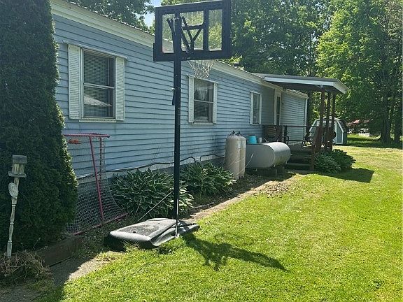 GREAT WELL MAINTAINED MANUFACTURED HOME ON A BLOCK CRAWL SPACE WITH ATTACHED ENCLOSED PORCH. PROPERTY IS A LARGE OPEN AREA TO LIVING ROOM & KITCHEN, DETACHED HEATED 2 CAR GARAGE W/REC ROOM AND BATHROOM. 2 OUTBUILDINGS SITUATED ON 1 ACRE LOVELY LANDSCAPED YARD W/SHADE TREES. 2 MILES FROM PYMATUNING LAKE. HOME WARRANTY