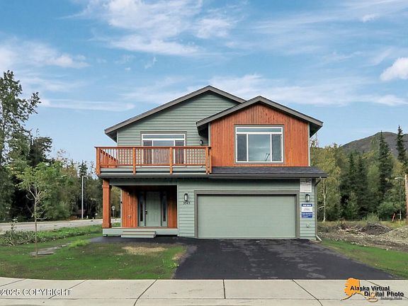 AHFC ENERGY REBATE QUALIFIED! Custom design w/huge SOUTH FACING upper deck for PANORAMIC View of Eagle River Valley & Mountains. Island kitchen finished in Stainless Steel, Quartz & Hardwoods. Private Mstr suite, Generous size bdrms all with walk in closets! Large separate family room on the first floor w/two bdrms and bathroom. Oversize garage. LANDSCAPED YARD. MOVE IN READY!