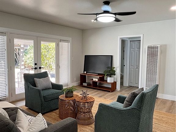 This stunning, move-in-ready home sits on a spacious, park-like lot surrounded by mature trees, offering both beauty and privacy. Thoughtfully remodeled with modern finishes throughout, the home features a sleek kitchen and bathroom, new cabinetry, and wide-plank vinyl flooring. The oversized lot provides incredible potential for future home expansion, a detached ADU or room for outdoor entertaining. A detached two-car garage with epoxy flooring adds functionality and style. Whether you’re looking for comfort, space or investment potential, this Bellflower gem delivers it all - just unpack and enjoy!