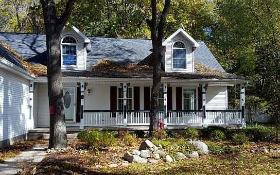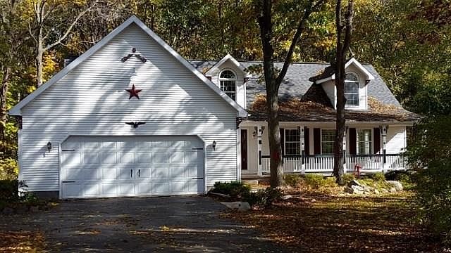 Come to the woods! This home sits way back off the road and is a woodsy retreat. It features first floor living with a large living room and kitchen/dining room combination. Great hunting with a variety of trees such as black walnut and oak. Second floor storage above the garage and a large shed/outbuilding with cement floor to store your lawn mower and landscaping tools. Enjoy the serenity on the covered front porch or on the deck off the dining room. 220 volt service in garage with hook up for whole house generator. 95% efficiency furnace and high output hot water tank. Full appliance package included.