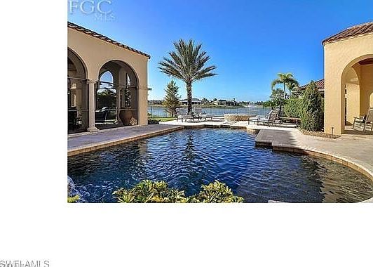 The Villa Andalusia is a Castilian Style Home built by Michelangelo Homes. The Architecture of this Home sets it apart from it's neighbors by virtue of its unique-rooflines-highlighted by Barrel tiles, Cylindrical Second Story Design and Arched and Oval Windows. Commanding Southern Views greet you upon entering the Domed Ceiling Foyer that overlooks the Pool and Lake including a Lighted Water Fountain, and the Golf Course and Preserve over which the Sunsets are Breathtaking. The interior has the Fit and Finish usually found in much more expensive homes. The details are too numerous to list.