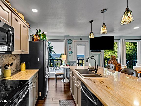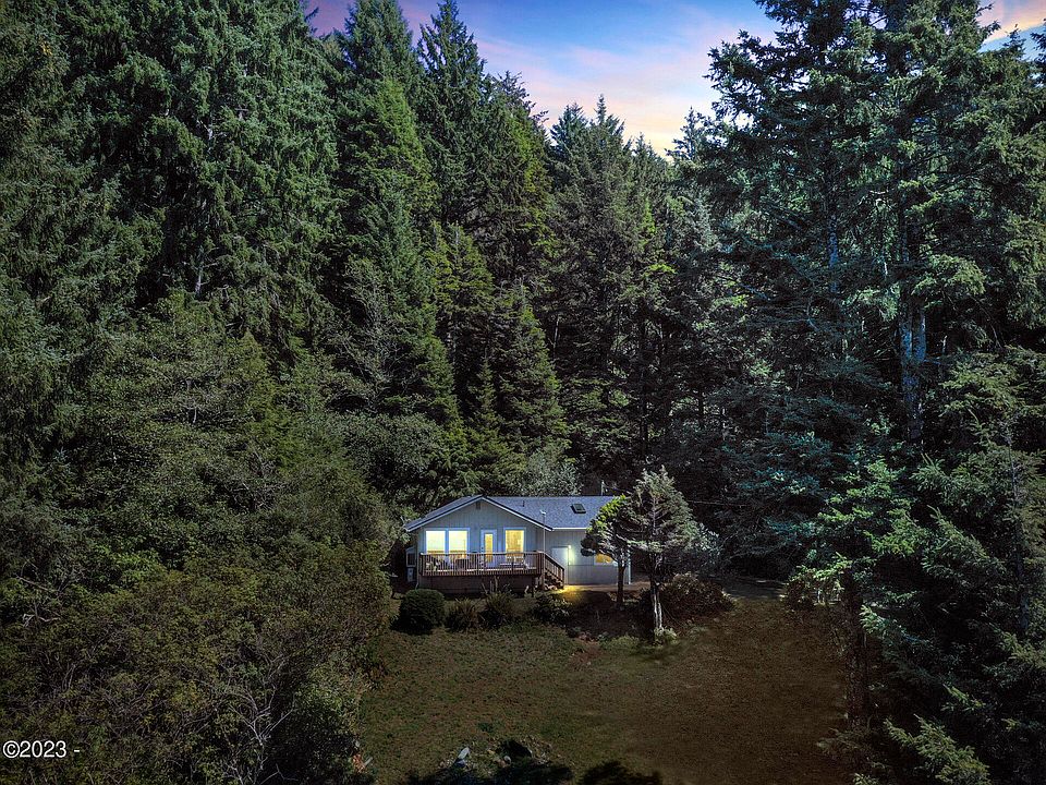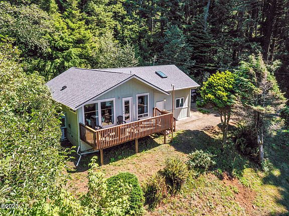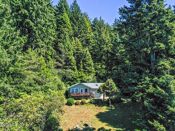 EXCELLENT VRBO potential just inside Lane County! Main Home, ADU potential & RV Hook ups all with sweeping ocean views. Two public beaches just steps away, property surrounded by National Forest. Custom and fully remodeled interior with granite counters, stainless steel appliances, new finish flooring, new roof. 2 garages/shops, over 5500 sq ft combined. Private gated entrance.