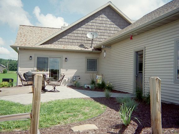Ranch with walkout basement. Garage is finished with epoxy floor covering. Lower level is finished, with finished storage and mechanical room. Lots of storage. Custom cabinetry throughout, granite counter tops, walk-in shower in master bathroom. Designed with no step up entry from main entrance, garage and patio. 32 inch doorways. Medium oak finish trim throughout. Solid oak 4 panel doors upstairs and 6 panel in lower level. Open concept kitchen, dining area and living room. Lots of large windows to give a sun room effect.