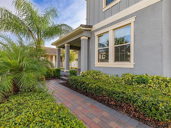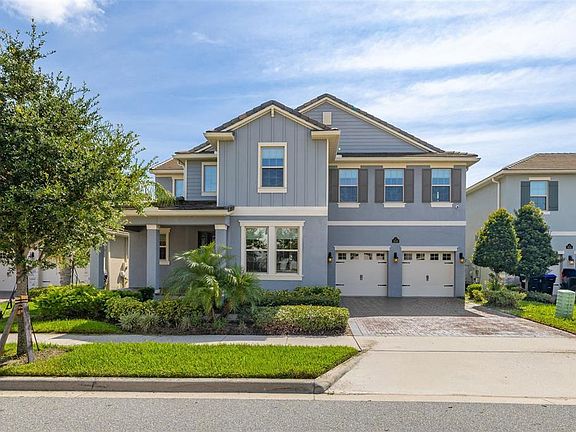 The lakefront life of grandeur awaits you in this stunningly enhanced North Haven model by DR Horton's luxury line, Emerald Homes! Structural enhancements are plentiful and include a Control4 Smart Home Automation System, custom designed closets in nearly every closet throughout the home, security system, technology operated window treatment, entire home water softener, reverse osmosis kitchen faucet, recessed lighting, tile roof for added longevity, and more! Admire the curb appeal as you walk up to your covered front porch by way of the sealed brick paver sidewalk amidst luscious landscaping maintained entirely by the HOA. Relish in the wood plank tile that floor most of the downstairs for a highly desirable look as well as ease of maintenance. To the right of the entrance is a flex space (named the formal dining room by the builder) ready for you to make of it what you want. Continue into the main living space and soak in all of the lake views through the many windows on the back of the home. The gourmet kitchen is also in this open concept space for taking in the lake views, and it is truly a home chef's dream being lined with tons of cabinetry and countertop space. The dining space is right off the kitchen overlooking those beautiful lake views. The primary suite is tucked away privately in the back of the home downstairs and contains even more opportunities for lake viewing. A tray ceiling and custom designed closet make this space even more admirable. The en suite showcases a split dual vanity, massive walk-in shower, and a garden tub that all overlook the lake. Head upstairs via an upgrade staircase lined with wrought iron spindles and luxury vinyl flooring. The loft greets you with endless opportunities of how to customize this space for your enjoyment. A ceiling-mounted projector and theater screen are included with the sale. More windows allow in natural lighting as well as the views of the lake. A Jack-and-Jill bathroom connect bedrooms 2 and 3, and both rooms feature custom designed closets. Bedrooms 4 and 5 are also upstairs and adorned with custom designed closets, and their bathroom is outside of the bedrooms and houses a dual vanity with separate water closet. Head out back where your gargantuan backyard extends from the house to the edge of the waters of Lake Ihrig. Relish in the fact that the HOA maintains this entire extended backyard so you have even more time to enjoy this outdoor space that is extremely rare in Horizon West. The tandem 3-car garage efficiently utilizes every opportunity for space. Situated in the back of the community, you truly get the best of both worlds by enjoying the peace and quiet yet also being a short walk away from the vast amount of amenities, A-rated schools, and the shopping plaza. Waterleigh is building out its final phase, and the Emerald Series is no longer offered making this an even more unique and special opportunity. Inquire today on how to make this gem your own!