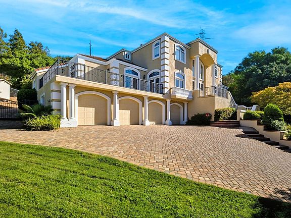 Exquisite KING of the hill home w- breathtaking panoramic views in the prestigious gated community of Eastridge. 4BD | 5BA. No rear neighbors- just majestic oaks, your own picturesque vineyard, and a resort-style pool and spa. Grand foyer with sweeping spiral staircase & soaring ceiling greets you as you walk through the designer front door. The main level includes a bedroom and a bath. Spacious chef's dream kitchen w-top of the line stainless steel appliances & a walk-in pantry. Luxurious primary suite boasts a spa-like bath, generous closet space w- a balcony. This 4,643 sqft custom beauty sits on .75 acres. Features include a sparkling heated swimming pool, waterfall, grotto, slide, and spa. Spacious 4-car garage with a driveway that curves up and around the back for easy access. Multiple fruit trees, owned solar panels, 3/fireplaces, wet bar and so much more! Enjoy stunning views from every window. This property is just moments from the Green Valley Country Club, Napa, local wineries, and all Bay Area commuter routes. Exceptional one-of-a-kind custom home. Make your dreams come true! Its pure bliss for entertainers.