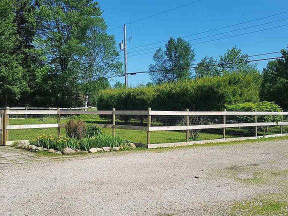 - LAND FEATURES: Cleared, Year Round Road, Level, Landscaped, Wooded/Treed, Partially Fenced, Sloping/Terraced