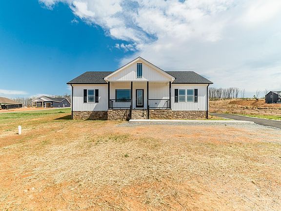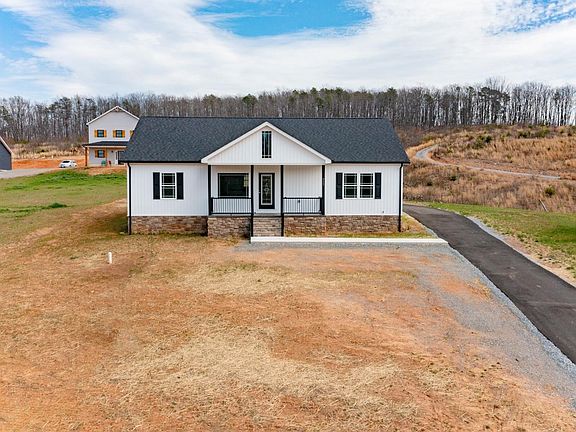Beautiful new construction in Campbell County ideal for those who desire true on-level living. Paved driveway extends around to the back of the house with no steps to enter, lovely stamped concrete patio too! So rare to find a one-level with a beautiful front porch, nice stone steps, but yet no-step entry into the back of the home. Once inside, you'll LOVE the fabulous open floor plan with massive great room open to the kitchen. The kitchen offers abundance of beautiful cabinets, granite counters, stainless appliances, and expansive center island. Enjoy entertaining with plenty of space for dining. Gleaming hardwoods (real hardwoods), beautiful paint colors, gorgeous lighting, and the list goes on. The primary suite with hardwoods is ideal, offers easy access, no carpet if a wheelchair is ever needed. Huge primary walk-in closet, pampering bath with double vanity. Two other large bedrooms (also with hardwoods), full hall bath, plus large mudroom, laundry. A MUST SEE ~ WOW!