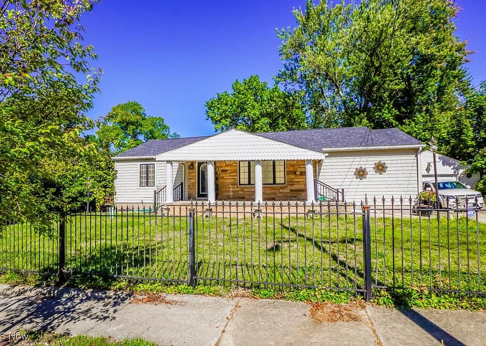 You’ll love this nicely updated ranch on a private fenced half acre in West Akron! A picture window fills the living room with natural light, highlighting the hardwood floor and gas fireplace. The dining room has new LVP flooring, a chair rail, and a mirrored accent wall, perfect for holiday meals. In the kitchen, updates include Lifeproof flooring, new cabinetry, stainless steel appliances, a farmhouse sink, and quartz countertops. A nearby den with a sliding door leads to the patio and spacious backyard.
