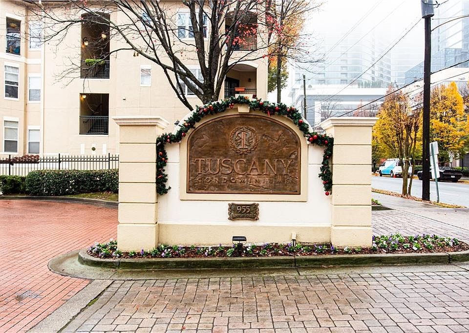 Live in the heart of Midtown! Walk to everything including Piedmont Park, Beltline, Fox Theater, High Museum, MARTA and loads of restaurants. The location is ideal. This spacious, freshly painted 2bedroom 2bath, in sought after gated Tuscany Condo Community is where you want to begin your life. This charming end-unit home is one of the largest open floor plans and does the natural light stream in! Brand new gleaming hardwood floors welcome you home. Entertain your family and friends watching the game while cooking in this fully equipped kitchen. Large walk-in pantry gives even more storage. Full size washer/dryer remains. Retreat to Owners suite after a long day for a long soak in the tub and make good use of large walk-in closet. All tile flooring in baths are brand spanking new as well! Good sized secondary bedroom w/ walk-in closet ideal for home office or a roommate. And then there is the lovely tree outside your great room window! Watch the seasons come and go. Owner sad to go. Tuscany Community has so much to offer. There is a well maintained lobby, sparkling swimming pool, renovated gym w/ even a tanning bed! You can even rent the clubhouse for any function or party you may want to have. And believe it or not and there is onsite management staff to help with any needs or request. This is the one. Tuscany is awaiting your arrival! And the fun times begin.