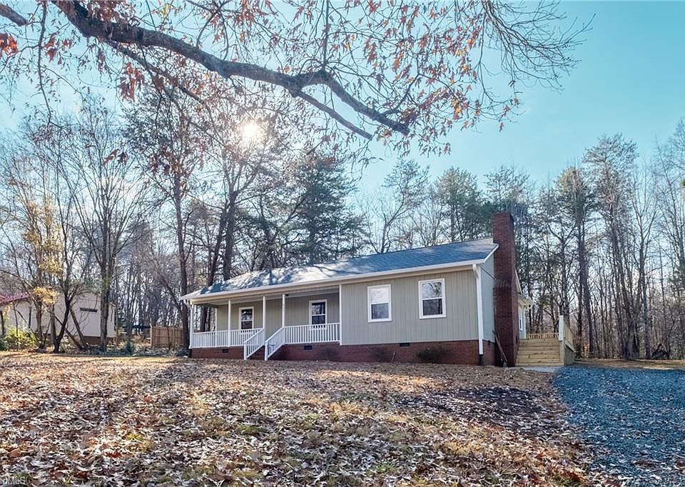 This fully renovated, single-level residence offers numerous upgrades, including a new roof, windows, gutters, HVAC system, new LVP and beautifully remodeled bathrooms. Inside, you'll find a cozy brick wood-burning fireplace, new interior doors, new fixtures and a large laundry room for added convenience. The kitchen has been enhanced with new cabinetry and granite countertops. New crown molding has been added for a refined touch. Situated on over a half-acre lot, the property offers exceptional outdoor living with a large deck extending from the side to the back, plus an inviting rocking-chair front porch perfect for relaxing. Located just minutes from I-85/40, this home provides easy access to shopping, dining, and commuting while still offering the comfort and privacy of a generous lot. USDA Eligible Area