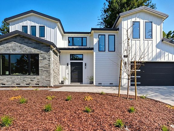 Newly completed in Sharon Heights, this modern farmhouse blends timeless board-and-batten siding and stone cladding with interiors of extraordinary sophistication. Lofty ceilings, dramatic porcelain and quartz slab installations, and sculptural statement lighting along with white oak floors throughout. The flexible floor plan spans two levels with 6 bedrooms, 6.5 baths, and a dedicated office. A fully integrated 2-bedroom, 2-bath ADU is accessible from the main home or through a private entrance, offering versatility for extended family or rental income. Spacious formal living room, open formal dining room, plus stunning kitchen and family room. Main-level bedroom suite (in addition to the ADU), plus upstairs primary suite, additional suite, and bedroom and bath. Sustainability is integral with solar power, all-electric systems, and a standing seam metal roof. Excellent Las Lomitas schools and minutes from Venture Capital centers and Stanford University.