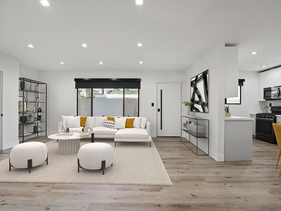 Inspired by midcentury Modernism architecture, these newly renovated rental homes in Hollywood are just minutes to the new Netflix corporate headquarters, the Sunset Bower studios, and the Sunset Gower studios. The thriving Downtown Los Angeles is just minutes away on the nearby 101 Freeway. 955 N Oxford Avenue, located in the heart of central Los Angeles in the Hollywood Studio District neighborhood, features a nine-unit, two-story low-rise building with enhanced modern architecture and a gray cement shade base and accents of earth tone colors. Carefully restored and designed by a renowned LA designer, these 1960s modern luxury rental homes feature keyless entry door locks to spacious one-, two- and three-bedroom floor plans with newly renovated kitchen and bathrooms. The kitchen boasts sparkling white stone quartz countertops with brand new self-closing cabinetry and high-end stainless-steel refrigerators with matching gas cooktop with oven and microwave. iRing doorbells with a smart home video security camera are also included as well as a stackable washer and dryer. Bathrooms feature porcelain tiled bath tubs and glass shower doors. Each rental home also includes central A/C cooling and heating with recessed lights with luxury style cellular shade window blinds and distressed wood plank floors. With a surge of gentrification, this area's popularity has grown significantly over the recent years by catering to families, young professionals, and hipsters alike, as an overflow effect and a more affordable option to Silver Lake, with its skyrocketing real estate values. The immediate area boasts new ground-up construction and small-lot development projects in recent years. 955 North Oxford Avenue has a Walk Score of 92 out of 100. This location is a Walker's Paradise so daily errands do not require a car. 955 North Oxford Avenue is a 24 minute walk from the Metro B Line (Red) at the Vermont / Santa Monica Station stop. This location is in the Hollywood Studio District neighborhood in Los Angeles. Nearby parks include Lemon Grove Park, Robert Burns Park and Wilton Historic District. | EXTERIOR | - Newly Modernized Facade - City Approved & Completed Earthquake Seismic Retrofit - Keyless Electronic Entry | INTERIOR | - Cellular Shade Window Blinds - Spacious Designer Floor Plan - Vinyl Plank Flooring | KITCHEN | - Modern Designer Cabinetry - Quartz Countertops - Stainless-Steel Appliances - Refrigerator - Range w/ Oven - Microwave - Open Kitchen Space Layout | BATH | - Tiled Shower and Bath - Glass Shower Doors - Oversized Vanity Mirror | AMENITIES | - Washer & Dryer (in unit) - Assigned Parking (except for unit 8 = no parking for this unit) - A/C Units
