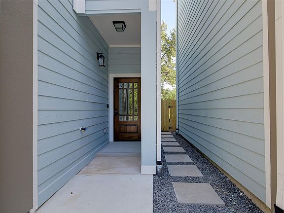 Spacious modern home with sleek design and thoughtful finishes, ideal for seamless indoor-outdoor living. The open kitchen is a highlight, featuring bright quartz countertops, stainless steel appliances, ample and custom cabinet space, a pantry room, storage, and a breakfast bar that seamlessly flows into the inviting living area. Upstairs, the primary suite boasts 9-foot ceilings, as on the first floor, a spa-like bathroom with a soaking tub and sleek glass shower, a walk-in closet, and an abundance of natural light. Enjoy summer evenings on the covered back patio with a ceiling fan, or stroll through the landscaped side yard and stone-paved pathway. Clean lines and designer touches, and luxury vinyl flooring throughout. Excellent construction quality and design. Energy-efficient home. No-HOA and 2.09% tax rate! Great city location! Move-in ready. Schedule your private showing today!