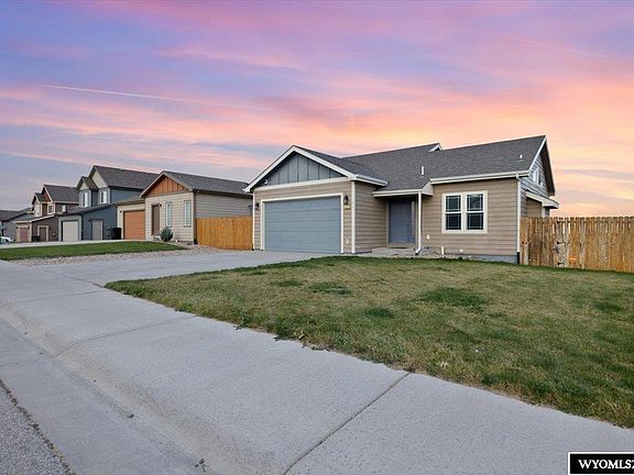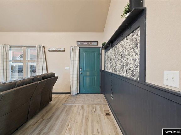 Welcome Home! This impeccably maintained 2012 sq/ft home has 2 bedrooms, 1.75-bath, 2 car garage, and sunrise views to brag about! The main level offers 1,006 sq/ft of comfortable living space, while the unfinished walkout basement opens directly to a spacious, fully fenced backyard—ideal for storage and future expansion. Features include an open-concept layout, vaulted ceilings, and modern updates which include newer LVP flooring throughout, a newer whole house water filtration system, a newer water softener, and newer water heater. The kitchen is equipped with newer stainless steel appliances (less than a year old), a dedicated reverse osmosis drinking water tap, and seamless access to a private deck so you can enjoy the beautiful unobstructed mountain views. This move-in-ready gem combines low-maintenance living with endless possibilities. Don't miss out on the opportunity to make this yours! Call or Text Kelly Brinkerhoff at (307)262-4559 to set up your private tour!
