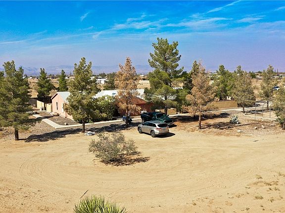 This spacious 4-bedroom home provides both privacy and ample room to enjoy. A new HVAC system and 3 sheds add convenience, while privacy fencing enhances seclusion. Unwind on the walkway that wraps around the entire home, showcasing its mature landscaping, including palm and pine trees, shrubs, and a serene courtyard with a fountain. Outdoor living shines with a gazebo, patios, BBQ area, and a rock-surround hot tub nestled among lush trees, creating a desert oasis feel. Inside, the large primary suite includes a massive closet, and the kitchen features stainless steel appliances, a new stove, a prep island, and plenty of cabinets. New bathroom flooring, ceiling fans, and a cozy wood-burning fireplace add comfort. A versatile bonus room offers space for a game room, office, or home gym. Located on a paved road for added convenience. FHA Approved tie downs installed.
