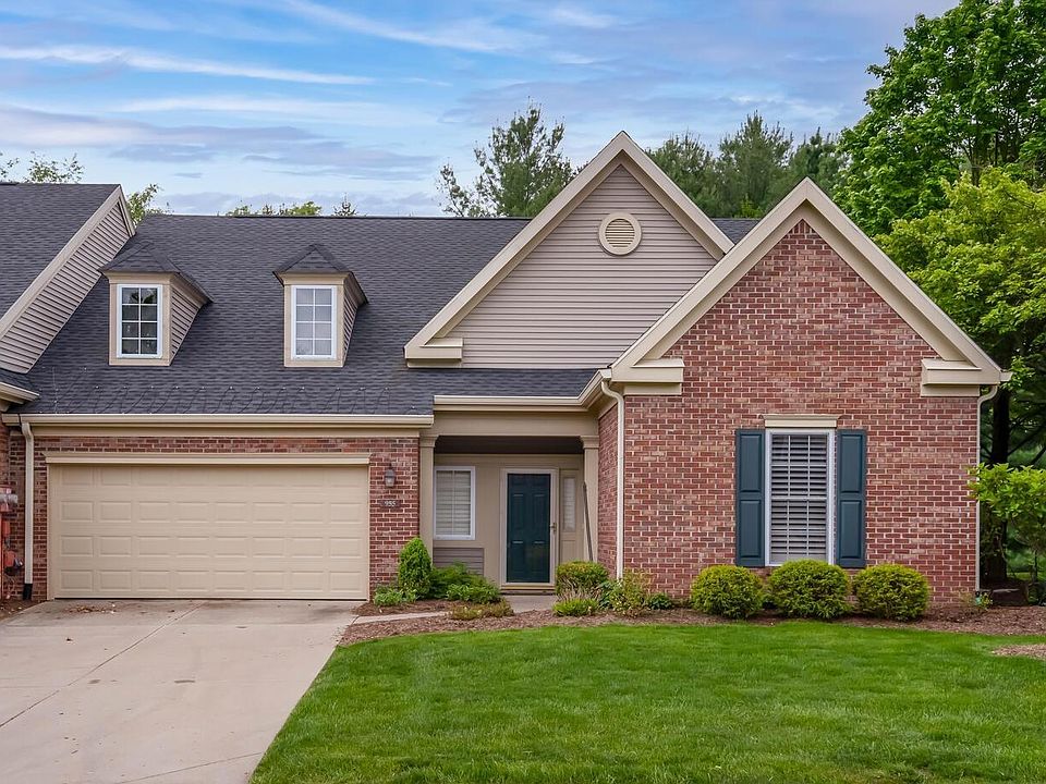 This exceptional, one-owner home boasts 3 bedrooms, 3 baths, and a den/study in the desirable Brighton Point Villas community. Crown molding, built-in speakers, wood shutters showcase the thoughtful custom touches. Entering through the grand foyer, you'll find a guest bedroom, full bath, and a den/study. The open concept living and dining area features highly ceilings, a gas fireplace, and tranquil views of the lush private green space. The updated kitchen is a chef's dream, complete with solid wood cabinets, Corian countertops, pull-out shelving, a gas range top with professional vent, a Subzero refrigerator, and a spacious island with a second sink and seating. The main level primary suite features custom built-ins that can be easily repurposed, a luxurious bath with a separate shower and tub, a walk-in closet, and a newer Toto toilet. Upstairs, you'll find a guest bedroom, a third full bath, and a versatile bonus room perfect for a craft or exercise space. Additional storage closets in the bonus room provide ample storage. The laundry room is conveniently located on the main level. The three-season room offers peaceful views of the private green space, and it leads out to a lovely patio with pavers and a gas hook up for a barbecue. Located just blocks away from the mall, popular east side restaurants, Indiana University, and IU Health Bloomington