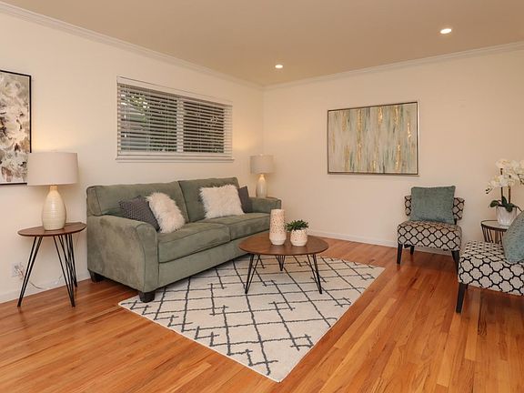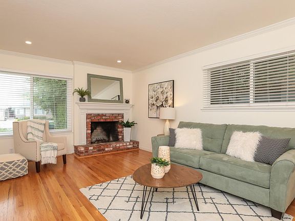 Beautifully updated Mountain View home ready to move right in. This spacious & open home offers three bedrooms & two bathrooms. Spacious formal living room with hardwood floors & wood burning fireplace. Updated kitchen with white cabinets, granite countertops & stainless steel appliances. Step down family room with built-ins. Master suite with gorgeous bathroom featuring dual vanity with Quartz countertops & large stall shower. Two additional bedrooms. Spacious guest bathroom with single vanity & tub/shower. Beautifully landscaped front & back. Two-car garage with laundry. Great location, walk to schools, parks & shopping. Walk or bike to downtown, Google & many of the other great local companies. Easy access to trails & transportation. Desired schools.