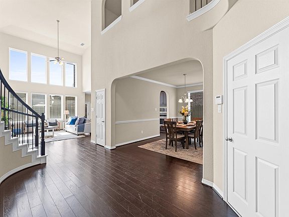 Welcome to this beautiful home in the heart of Richmond. Step inside a welcoming foyer that flows into the formal dining area. The heart of the home is the soaring living room, with a tower ceiling and expansive windows that fill the space with natural light. The open-concept design connects the living area seamlessly to the gourmet kitchen — a chef’s dream! Retreat to the spacious primary suite, which features gorgeous wood flooring and large windows. Upstairs, you'll find four additional bedrooms, along with a game room and a media room — the perfect setting for movie nights and weekend fun. Step outside to enjoy a covered patio and beautifully maintained backyard — ideal for peaceful mornings, playtime, or evening get-togethers. This home is more than just a place to live — it’s a place to create lasting memories. Don’t miss your chance to make it yours!