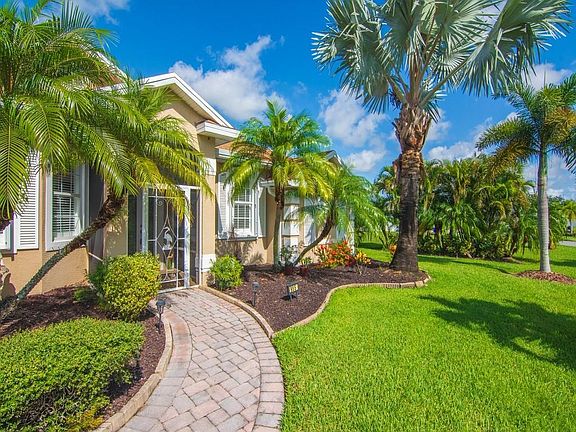 GATED EASE WITH POOLSIDE PARADISE! THIS 4-bedroom, 3-bath home is designed for comfort and style. One bath opens directly to the expansive lanai with a screened in saltwater pool with sun shelf. The exterior features a paver driveway & front walkway, screened in entry, and tropical palm landscaping. Inside, enjoy plantation shutters, tile flooring, a formal dining room, two gathering spaces, and a kitchen with gas SS appliances, breakfast bar, and dining area. Updates include roof '21, A/C '19, HWH '23, whole house generator '21. Close to shopping, dining, and beaches.