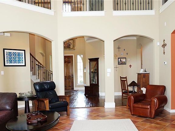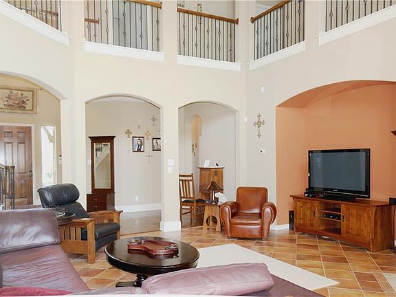 Almost impossible to find a 5 bedroom, 3 car garage home with a 13000 gallon pool at this price! This beautifully maintained Sotherby home features a dramatic 21 foot entry, hand scraped hardwoods, arched openings, coffered ceilings, 12 foot ceilings throughout, crown moldings, 6 inch baseboards and a huge granite kitchen island. Other designer touches include a stain grade double stacked mantel and tumbled marble surround on the corner fireplace, ornate wrought iron curved staircase and catwalk, fresh paint and professional landscaping. Huge walk in attic storage area, built in pest defense system, additional water heater for kitchen faucet, and tons of storage. Roof replaced in 2016.