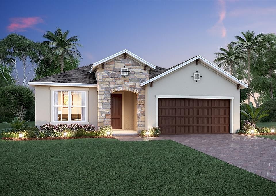 Under Construction. Ready in April. This Energy Star Certified home has 4-bedrooms, 3-baths, covered lanai and 2-car garage. Kitchen features 42" dark brown cabinets with crown molding, stainless Whirlpool® appliances (GAS range, refrigerator), granite countertops, and walk-in pantry. 18' Tile flooring throughout. The Primary Suite has two walk-in closets, dual sink vanity, privacy lavatory, linen closet and elongated glass shower. Bedroom 4 has en suite bathroom perfect for visiting guests or a young adult. Bathroom 2 has a shower in lieu of tub. Window blinds throughout. Located close to Florida's Turnpike, Highway 50, shops and dining. Park View at the Hills offers residents a Community Pool with Cabana, Playground, pocket Parks throughout community. *Interior images are of another home with the same design, finishes vary.* Room Feature: Linen Closet In Bath (Primary Bedroom).